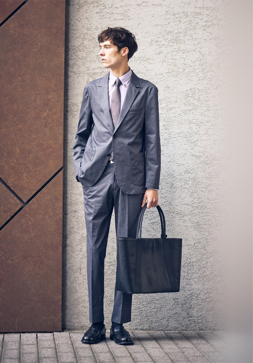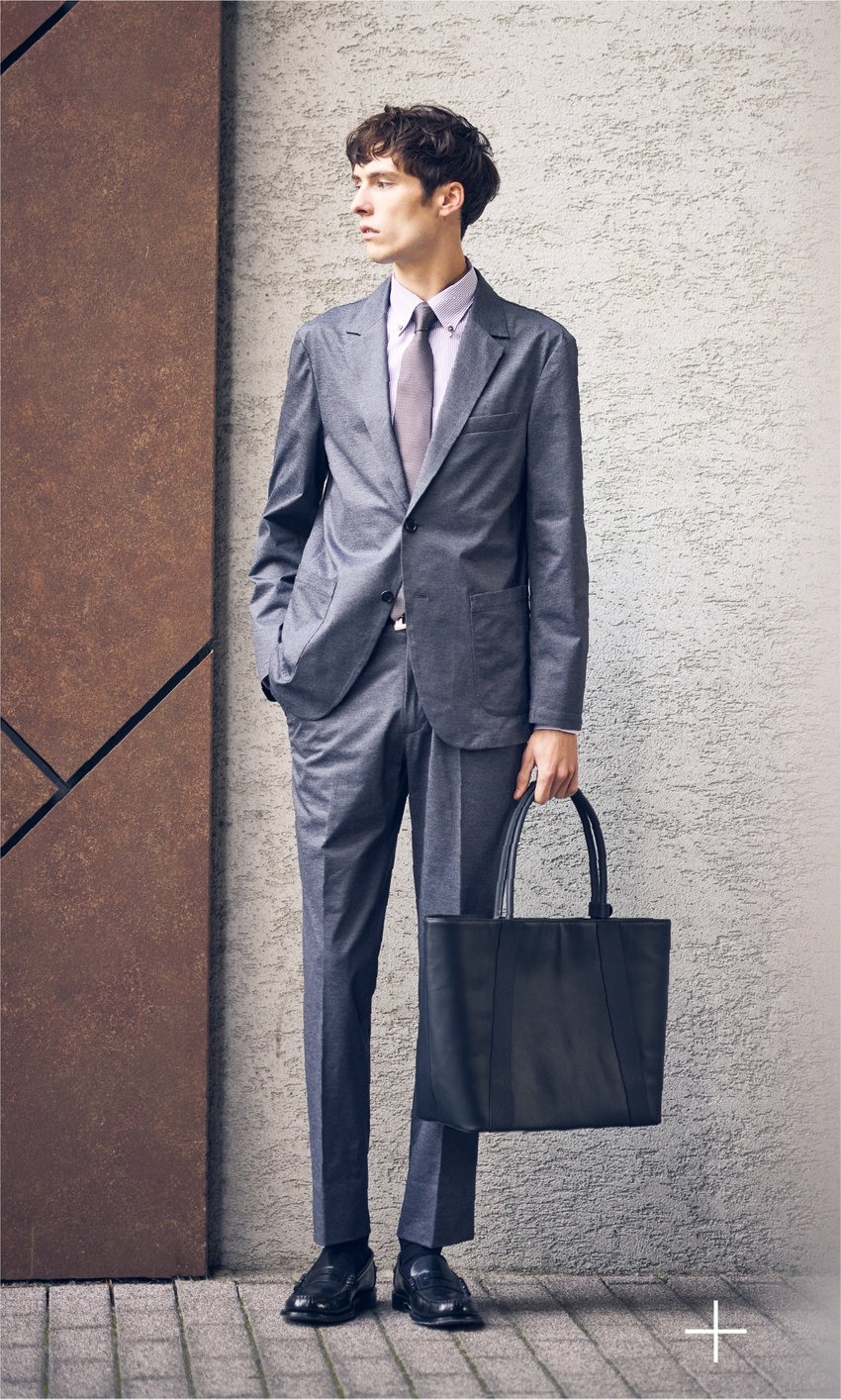 ネクタイを締めれば、きちんとしたいビジネスシーンにも。暑い季節はもちろん、真冬以外のオールシーズン活躍。