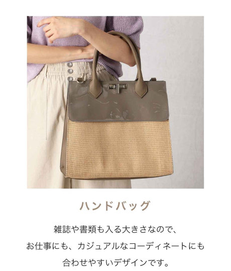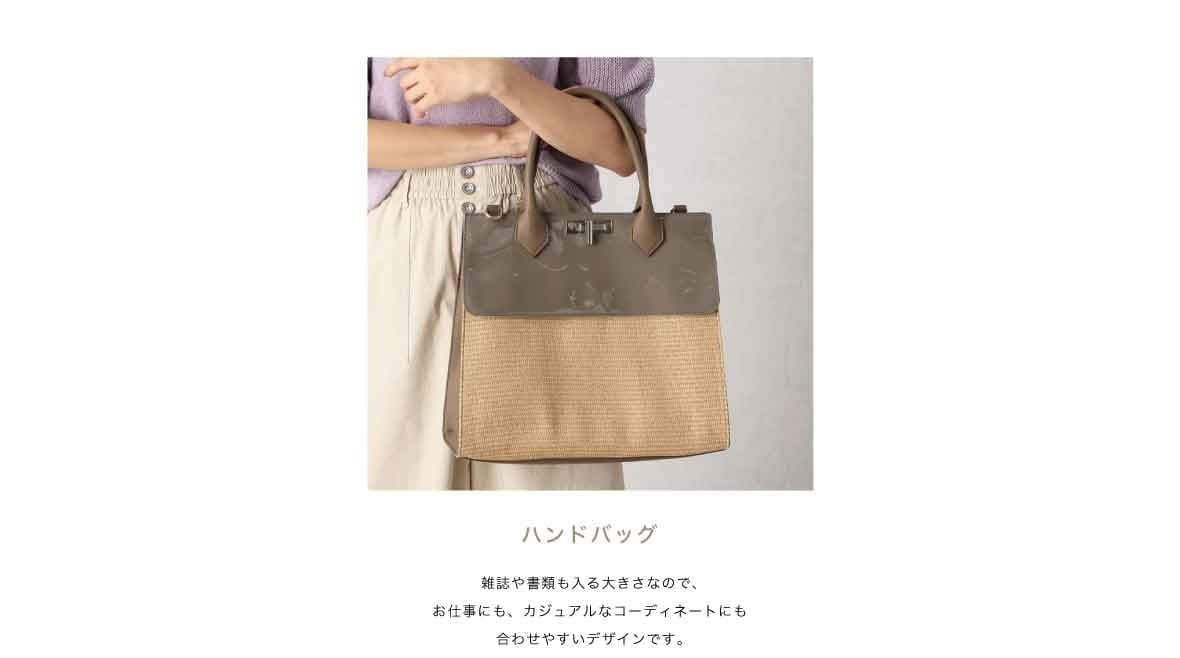 ラフィア風の風合いを表現した生地を使った