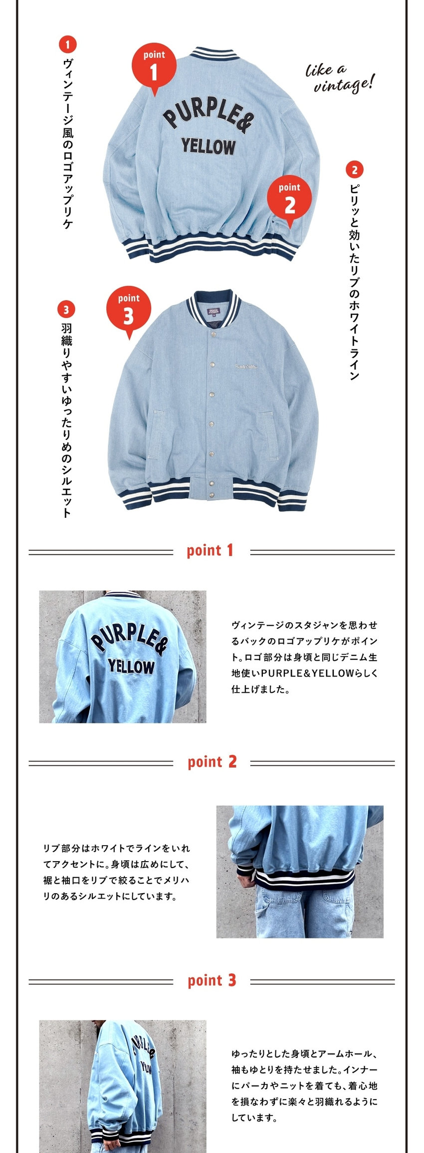 Purple&Yellowが大切にしているデニムアイテム。今シーズンも他には無いデザインで新顔をラインナップ。それぞれのアイテムのこだわりポイントを大解剖。これを読んでぜひ実物を手にとってみてください。